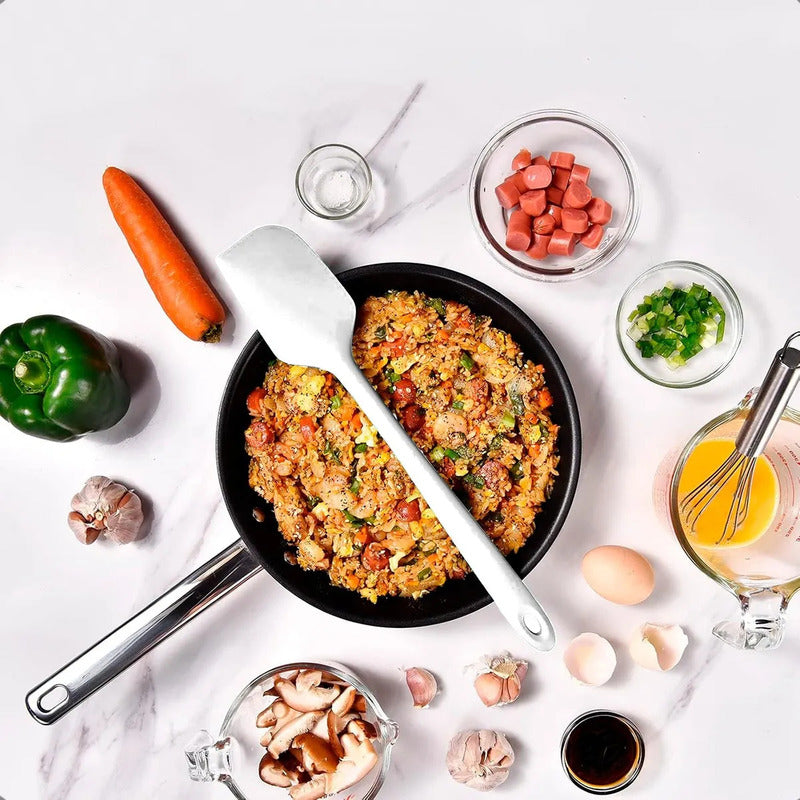 DESCRIPCION DEL PRODUCTO ESPATULA SILICONA Nuestro utensilio de cocina de silicona resistente al calor de alta calidad tiene un núcleo de acero inoxidable en el interior para mayor resistencia. La espátula de silicona resistente al calor puede soportar el uso exigente de cocinar, hornear y mezclar. Cómodo de manejar y agarre antideslizante, perfecto para agitar, raspar y plegar una amplia variedad de alimentos y sin costuras ni grietas para atrapar alimentos. Tenemos las espátulas de silicona especialmente diseñadas para ti. La mini silicona suave es el equilibrio perfecto entre fuerza y flexibilidad, el borde liso te permite raspar fácilmente los lados de tu tazón de mezcla o glaseado en tu pastel para glasear, y tiene una cabeza de silicona resistente y un diseño profesional de radianes que funcionan muy bien para mezclar masa y hornear. La espátula de silicona antiadherente resistente al calor se puede limpiar de la misma manera que los utensilios de cocina normales, resisten las manchas y la espátula de silicona flexible antiadherente apta para lavavajillas no se deforma, derrite o astilla en el lavavajillas, espátula de silicona antiadherente sin BPA para utensilios de cocina antiadherentes. A diferencia de otras espátulas baratas de bajo rendimiento, nuestra espátula de silicona grande es perfecta para agitar, raspar y plegar una amplia variedad de alimentos. Nuestro innovador diseño sin costuras no tiene costuras ni grietas para atrapar alimentos y mugre, lo que significa que tu espátula grande se limpiará fácilmente y mantendrá tu comida segura. CONTENIDO DE LA COMPRA X2 ESPATULA SILICONA.
