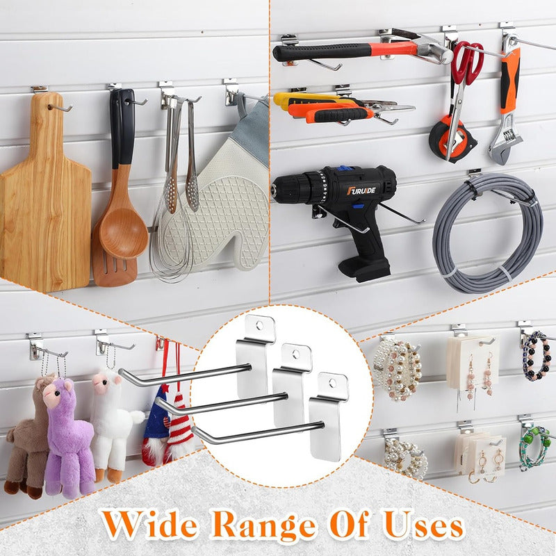 DESCRIPCION DEL PRODUCTO Gancho exhibidor Ganchos para estanterías con tableros de agujeros, solución de almacenamiento perfecto para garajes y demás sitios para organizar tus herramientas y/o materiales. Hecho acero carbono satinado y recubierto con galvanoplastia con una superficie muy pulida. Longitud de 20cm Resistente a golpes, acero inoxidable de larga duración. CONTENIDO DE LA COMPRA X10 Gancho exhibidor