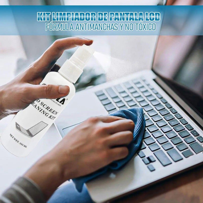 DESCRIPCION DEL PRODUCTO KIT LIMPIADOR DE PANTALLA LCD Efectivo pack de limpieza para diferentes dispositivos como tabletas, ordenadores o smartphones que contiene un spray limpiador de 100ml, una toalla microfibra más una brocha El limpiador en spray es totalmente efectivo gracias a su rápida evaporación, su fórmula anti-manchas y además no es tóxico La toalla de microfibra de alta calidad le permitirá un acabado perfecto en su pantalla Y la ligera brocha con propiedades anti-estáticas es ideal para usarla en las lentes de las cámaras y sensores Ideal para diferentes tipo de pantallas como: tabletas,plasma,móviles o smartphones,LED,monitores,relojes,calculadoras, portátiles, gafas, e-readers y mucho más CONTENIDO DE LA COMPRA X2 KIT LIMPIADOR DE PANTALLA LCD